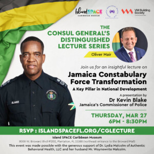 As part of Jamaican Consul General R. Oliver Mair’s Distinguished Lecture Series, Island SPACE Caribbean Museum will host an insightful lecture presented by Jamaica’s Commissioner of Police, Dr. Kevin Blake, on Jamaica Constabulary Force’s transformation.