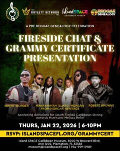 Back 2 Da Future Music Ltd., in collaboration with Island SPACE Caribbean Museum and The Royalty Network Ltd., proudly presents a Fireside Chat & Grammy Certificate Presentation.