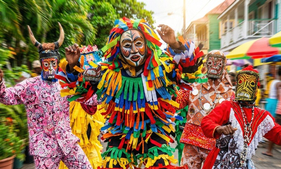 In the Bahamas, Junkanoo is the national cultural festival, celebrated with massive street parades on Boxing Day and New Year’s Day. Dating back to the early 19th century, the tradition also draws from the legend of John Canoe, adapted by enslaved Africans as a form of cultural expression and resistance.