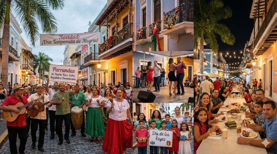In the Latin Caribbean, Navidad is a full season of celebration, not just a single holiday. Across Puerto Rico, Cuba, and the Dominican Republic, neighborhoods come alive with Parrandas—late-night musical visits filled with drums, guitars, and aguinaldos.